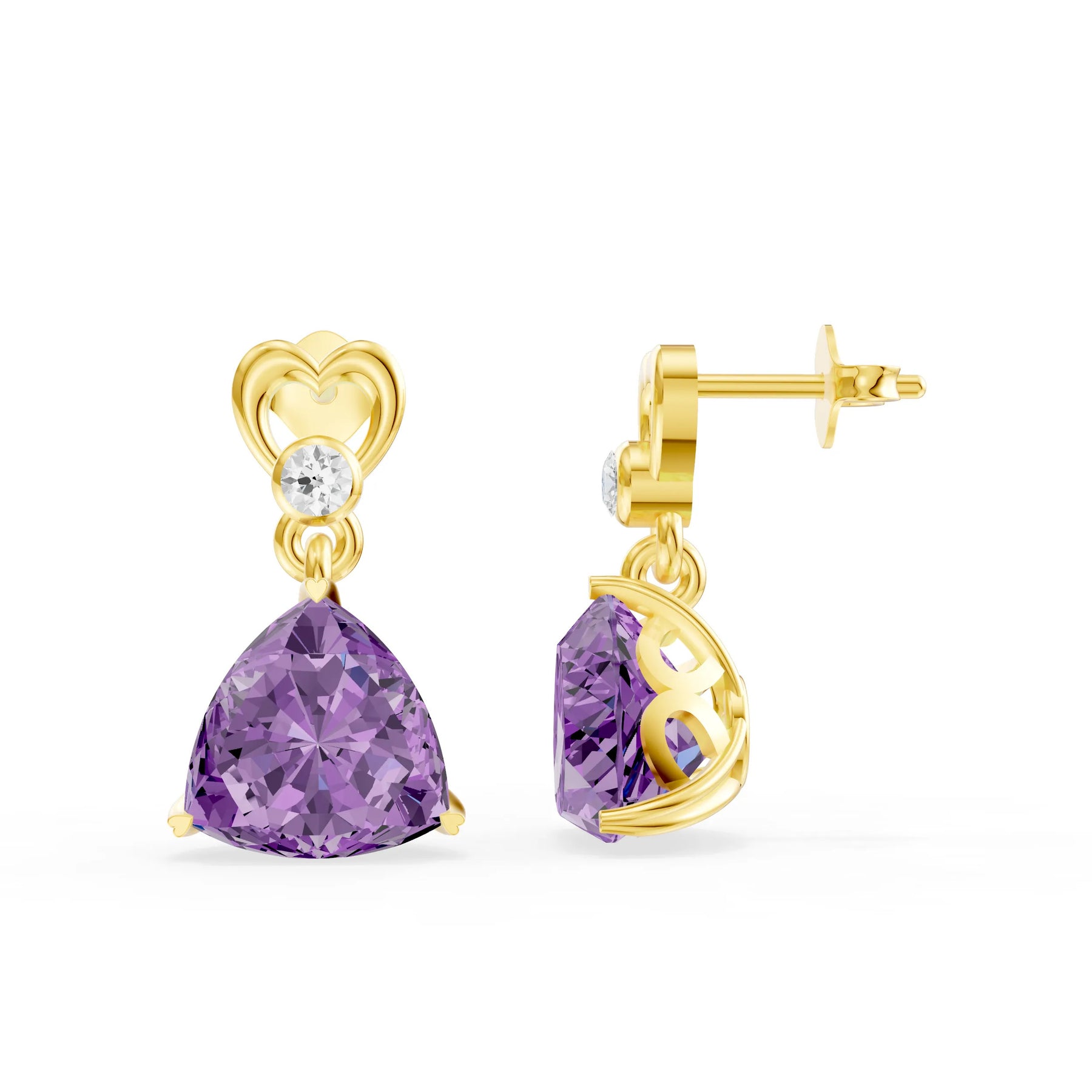 Elevate your accessory game with the Trillion Heart Earrings, featuring a stunning 7mm gemstone nestled in your choice of 10k, 14k, or 18k gold, available in White, Yellow, or Rose Gold. Meticulously crafted by Peora, these earrings embody quality and artistry in a unique trillion cut design. At Peora, we pride ourselves on blending responsible sourcing with exquisite craftsmanship to create jewelry that resonates emotionally and lasts beautifully. Each earring sparkles with the vibrant colors and clarity of your chosen gem, transforming with light and every heartbeat. Each piece arrives luxuriously packaged in a gift box, making it perfect for special occasions or safekeeping.