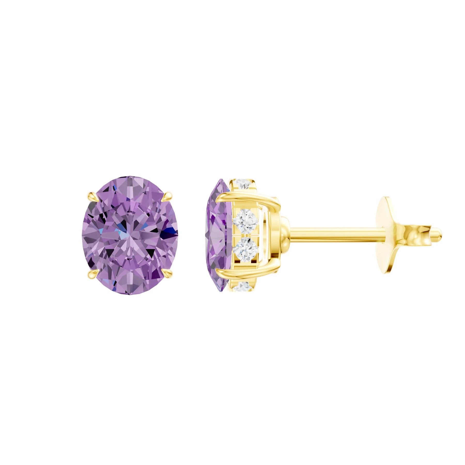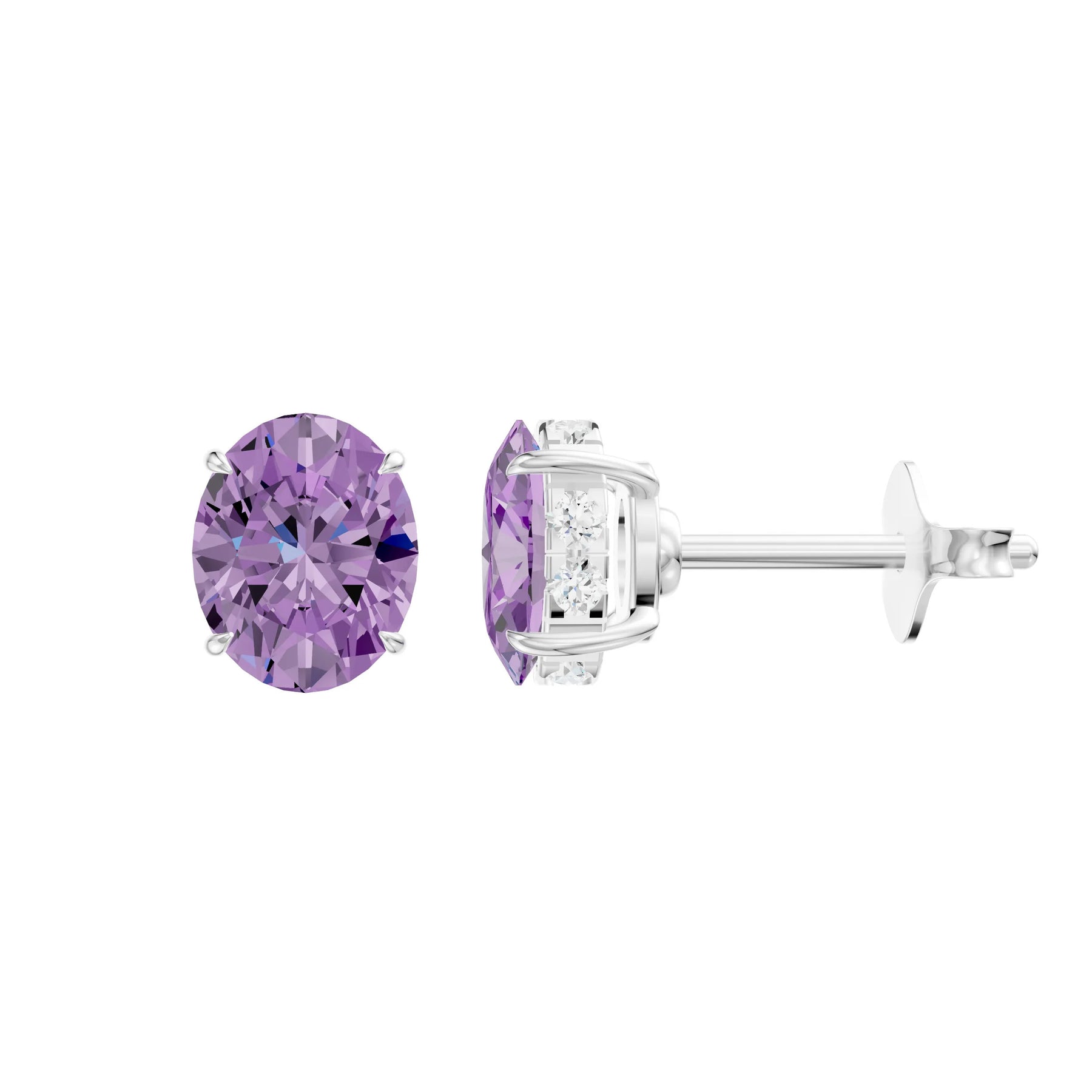 Amethyst Hidden Halo Earrings - Oval - 5x3mm
