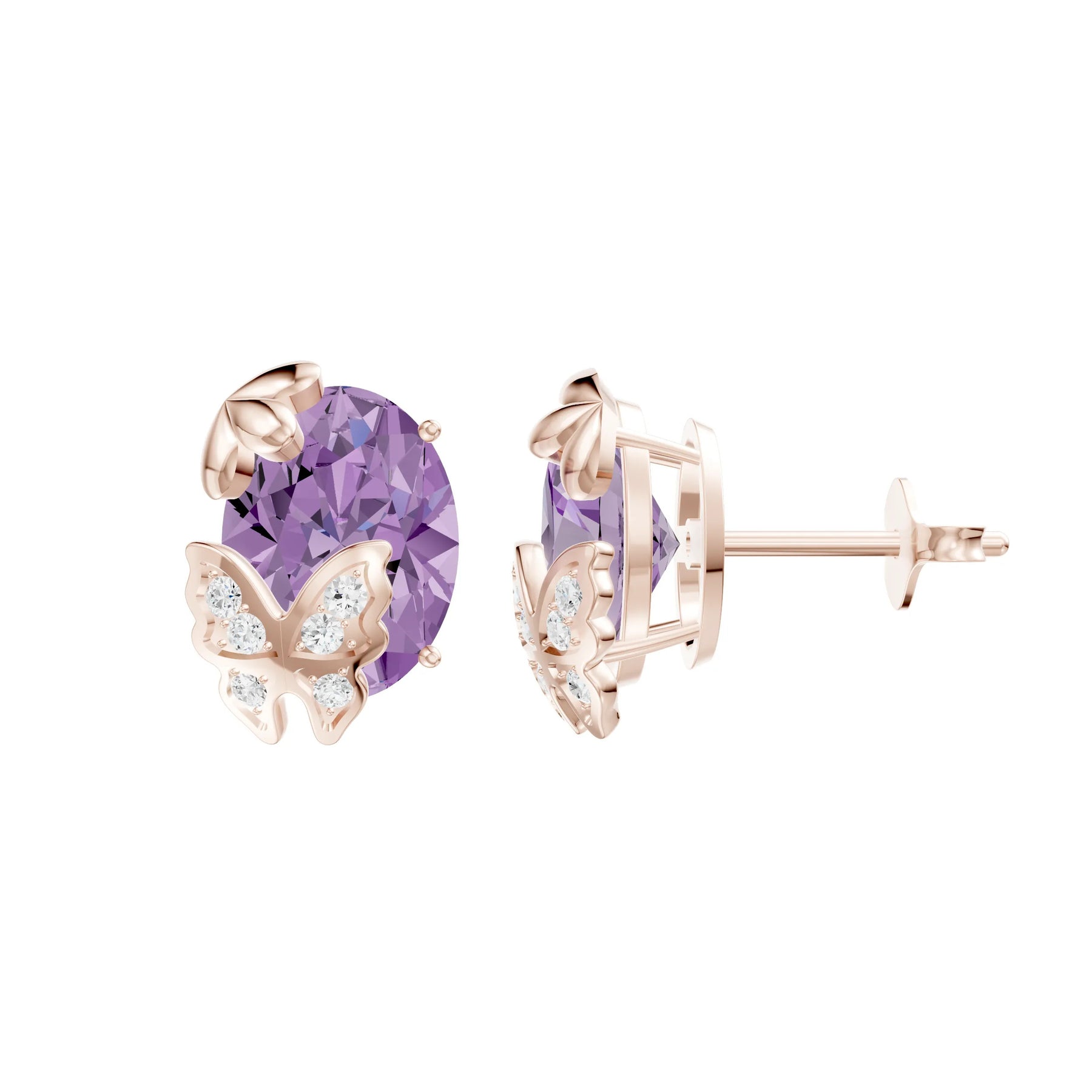 Amethyst Oval Butterfly Earrings - 8x6mm