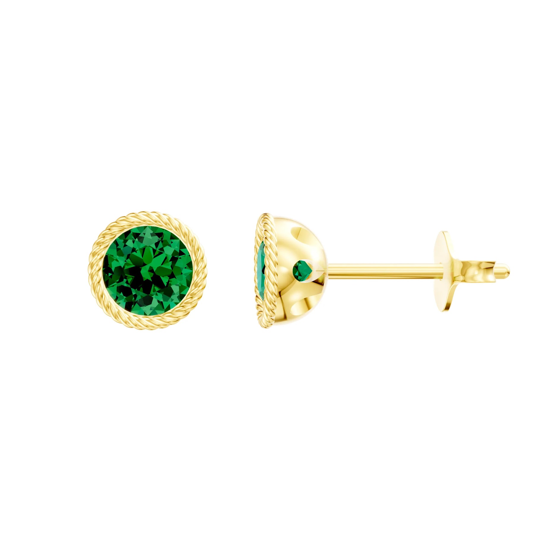 Emerald Round Bezel Earrings - 4mm