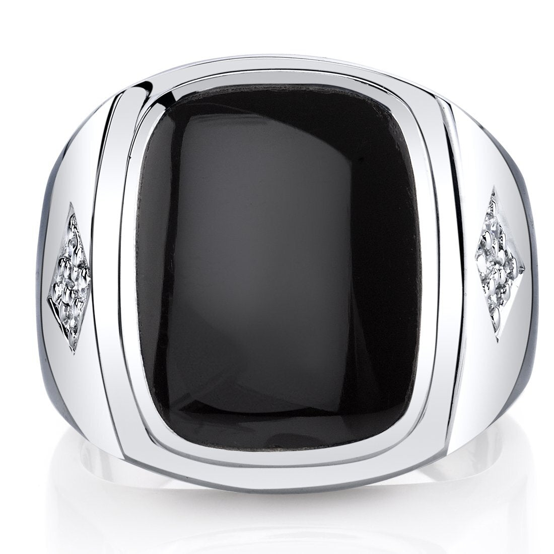 Mens Cushion Cut Black Onyx Knight Ring Sterling Silver Sizes 8 To 13