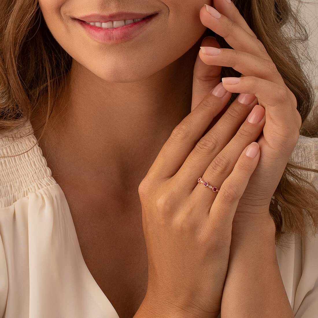 Ruby Marquise and Round Stackable Ring Band Rose-Tone Sterling Silver