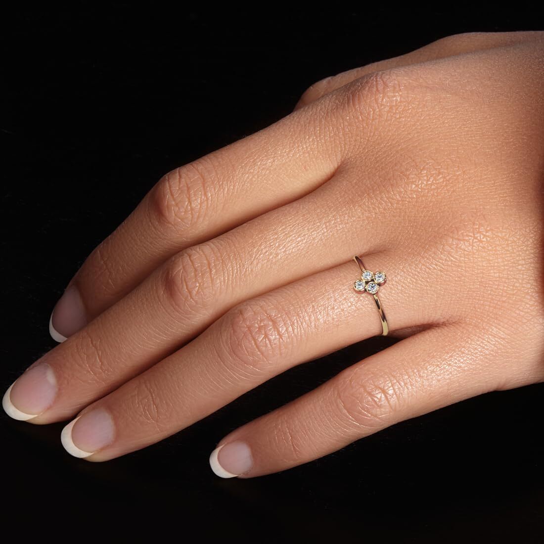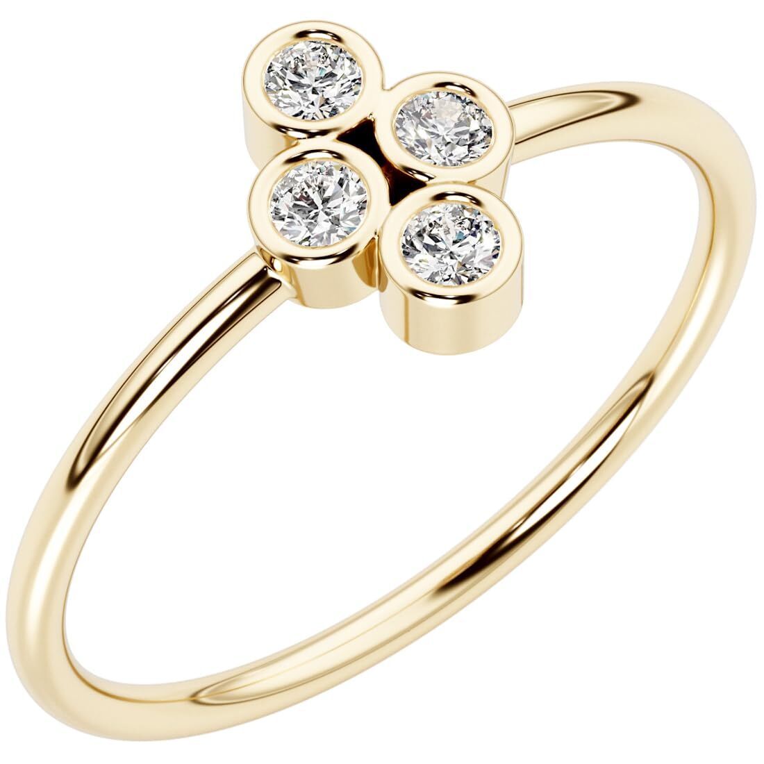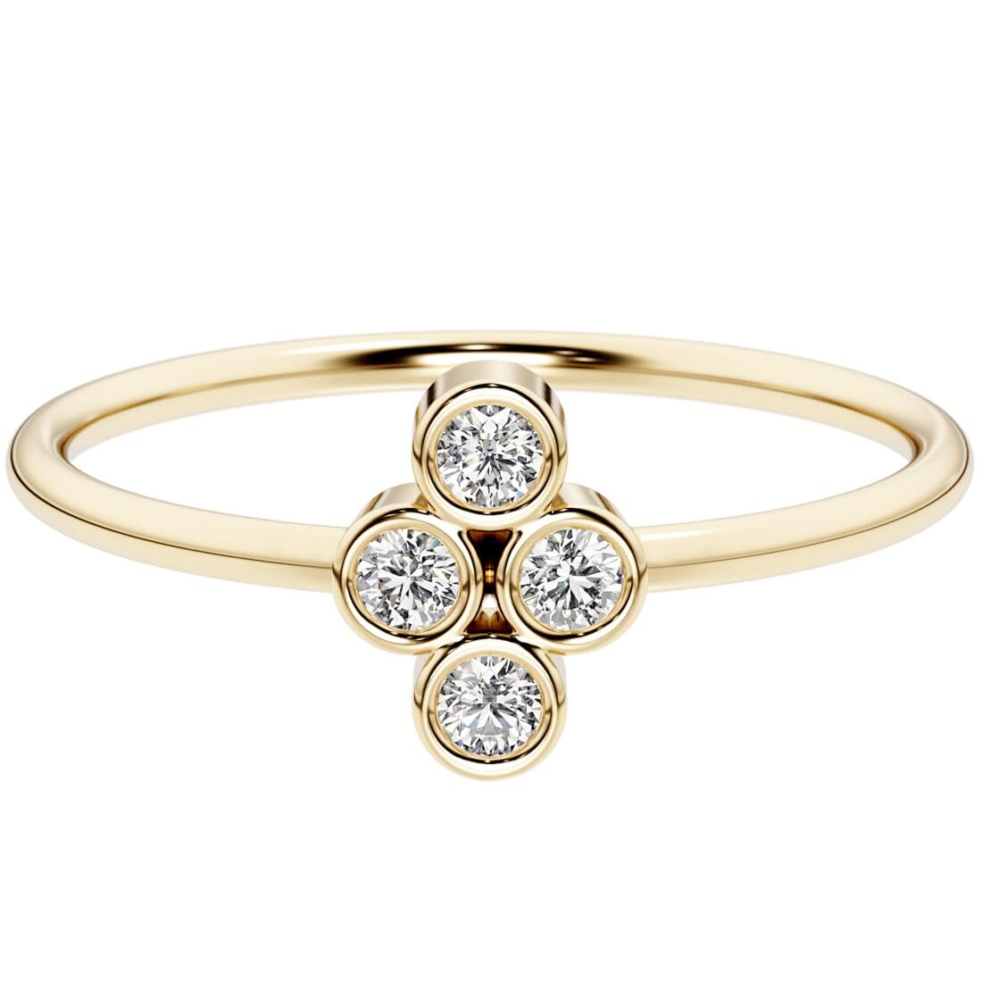 Diamond 4-Stone Stackable Ring 14K Yellow Gold Plated Sterling Silver