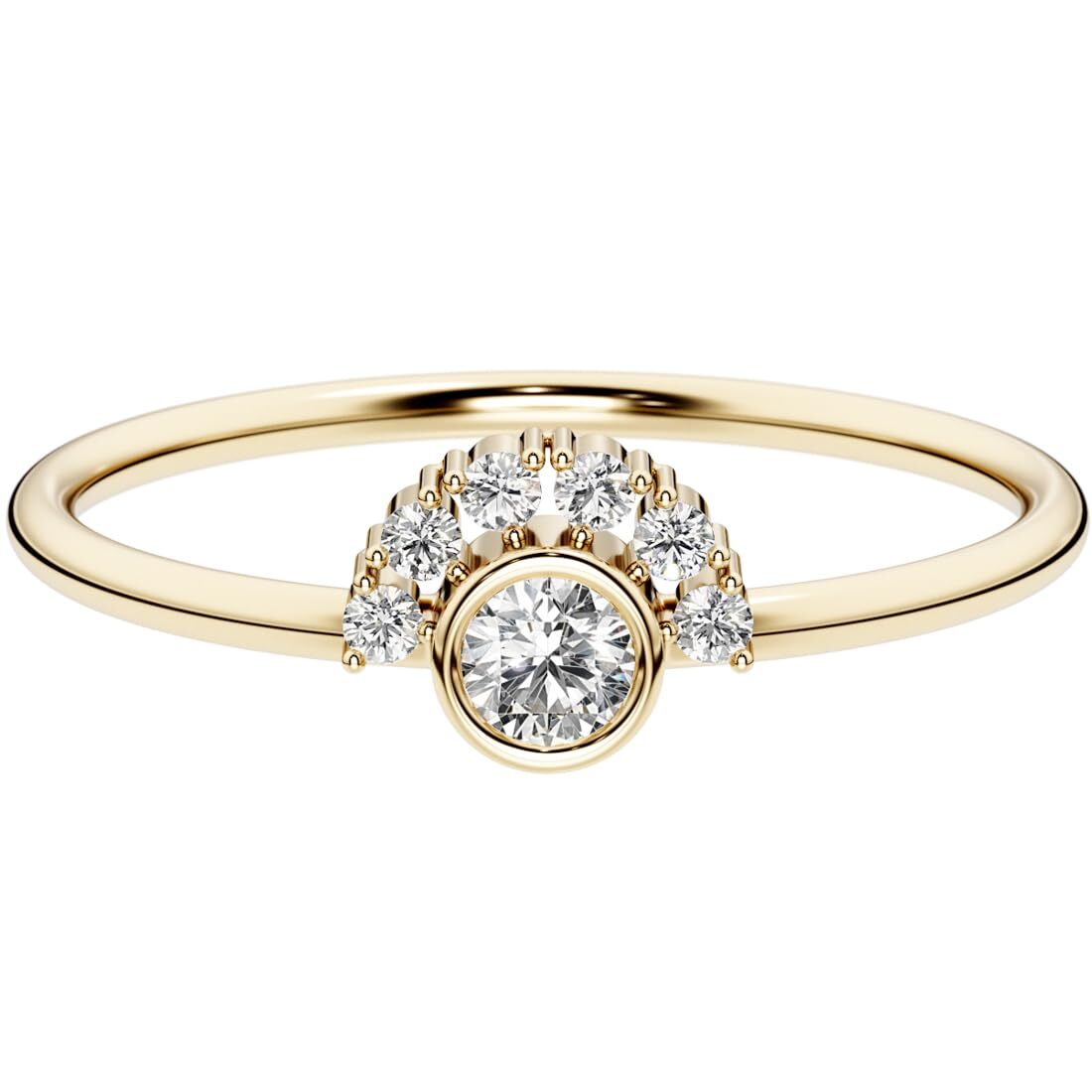 Diamond Sunburst Stackable Ring 14K Yellow Gold Plated Sterling Silver