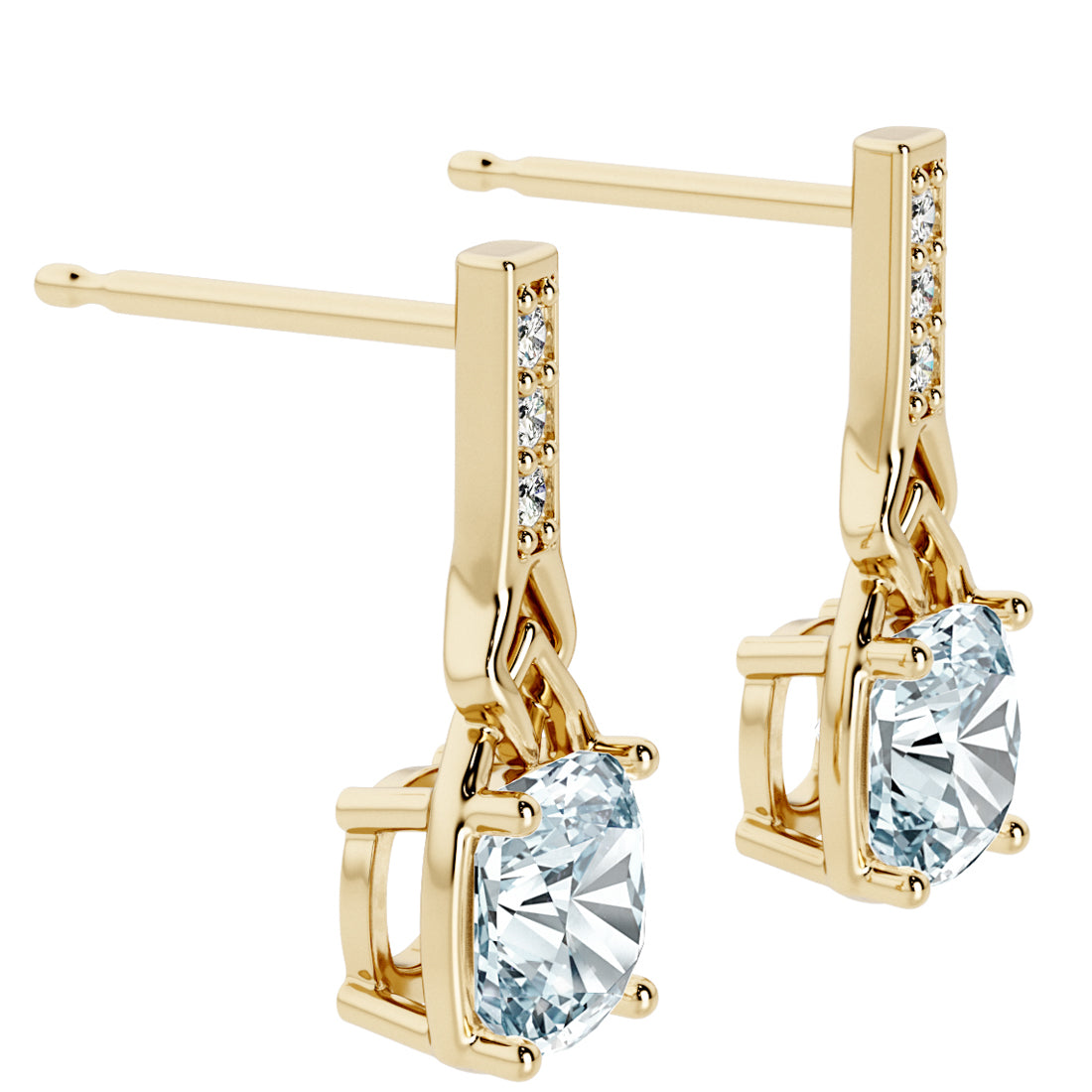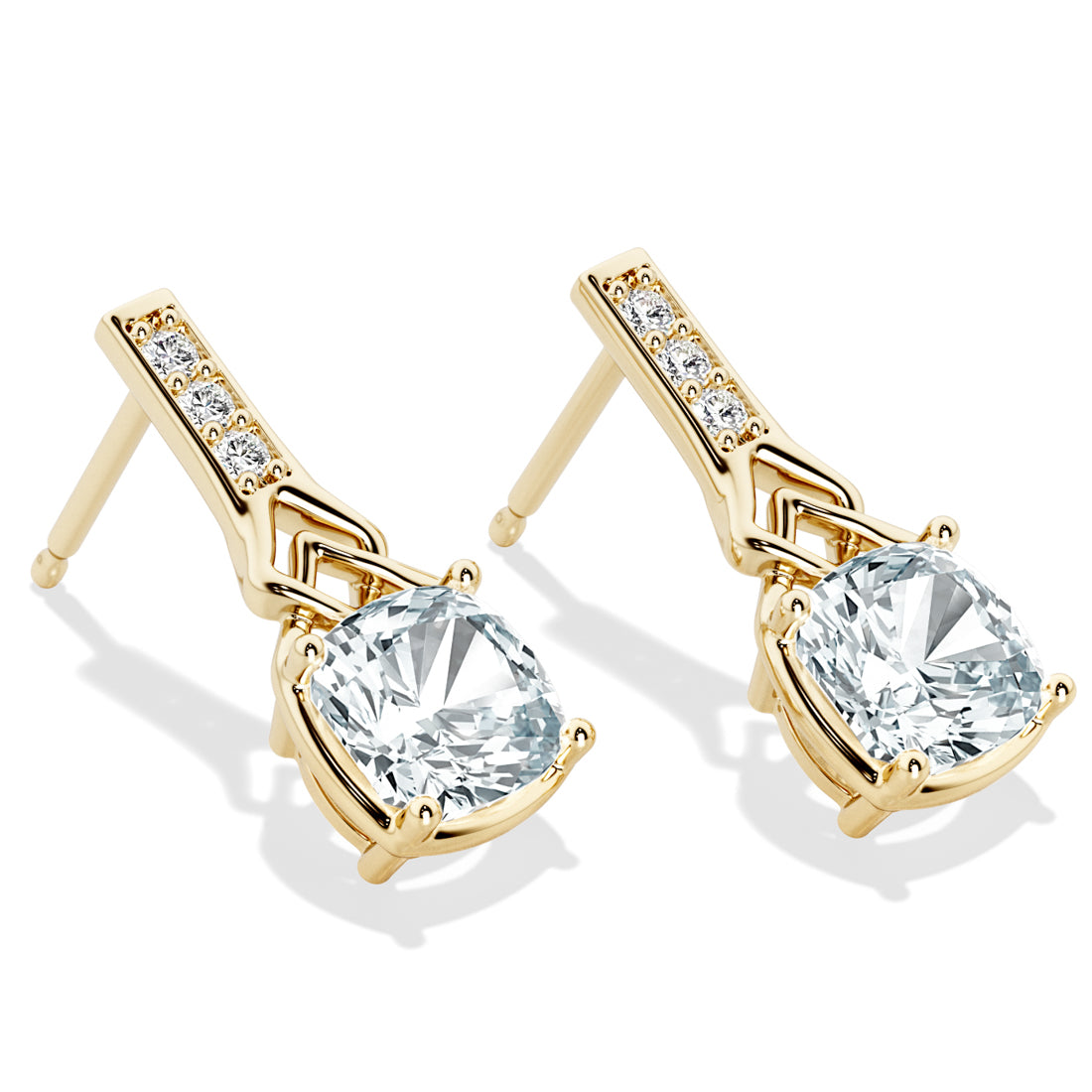 1.50 Carats Cushion Cut Aquamarine and Lab Grown Diamond Link Cathedral Drop Earrings in 14K Yellow Gold Plated Sterling Silver