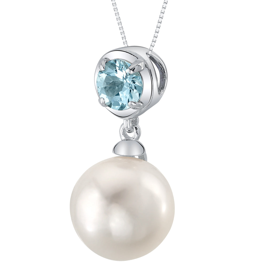Freshwater Cultured Pearl & Aquamarine Birthstone Pendant Necklace