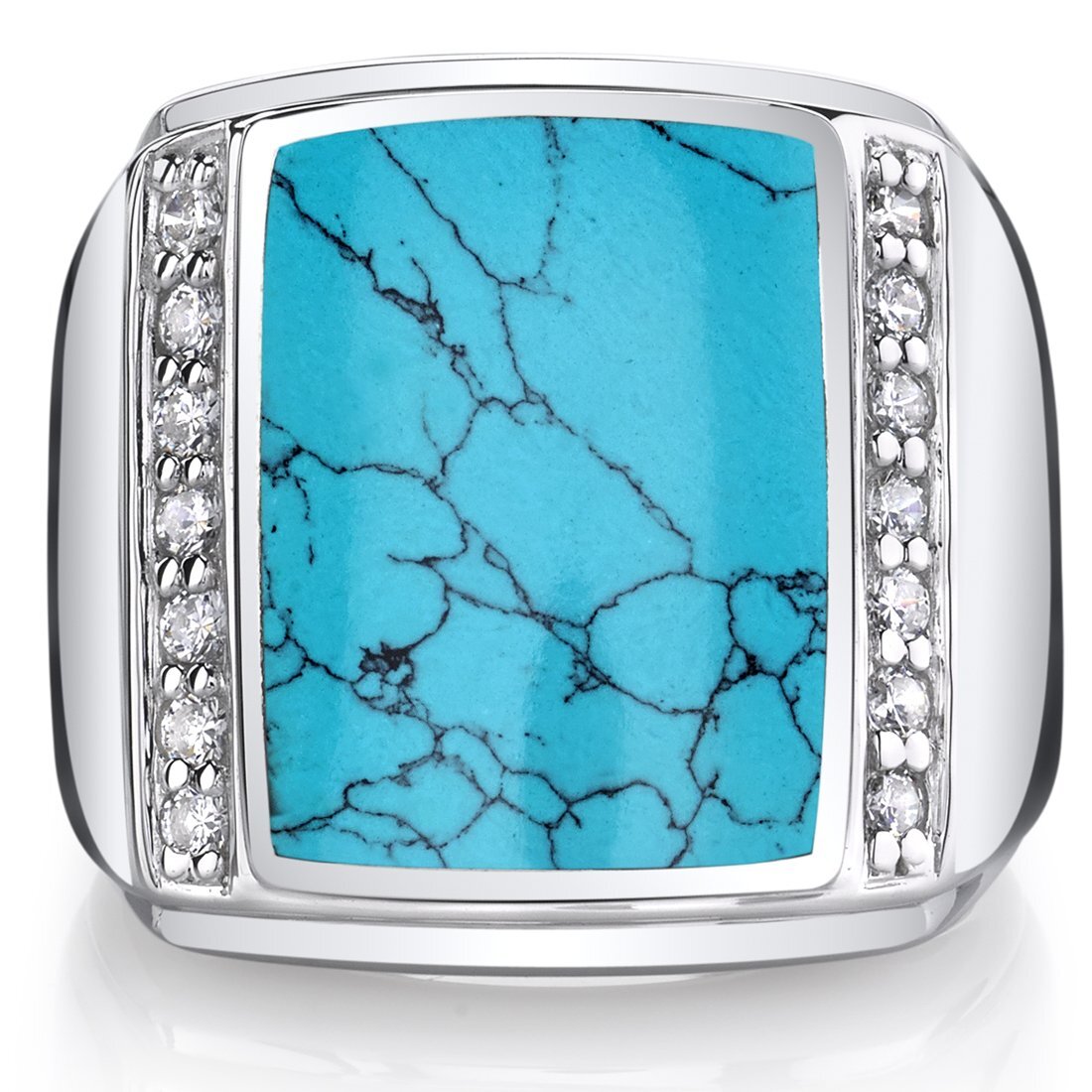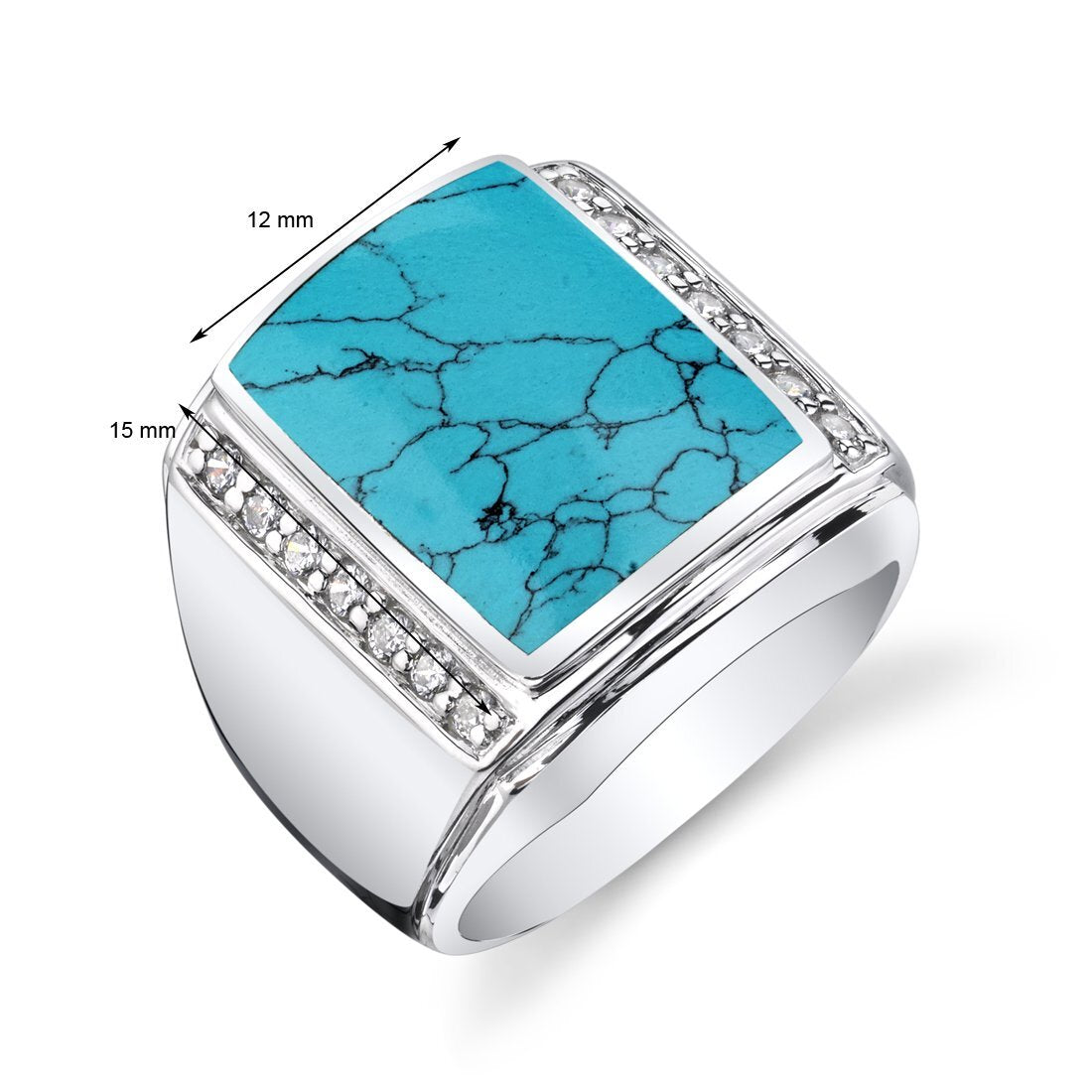 Mens Simulated Turquoise Aston 925 Sterling Silver CZ Ring Sizes 8 To 13