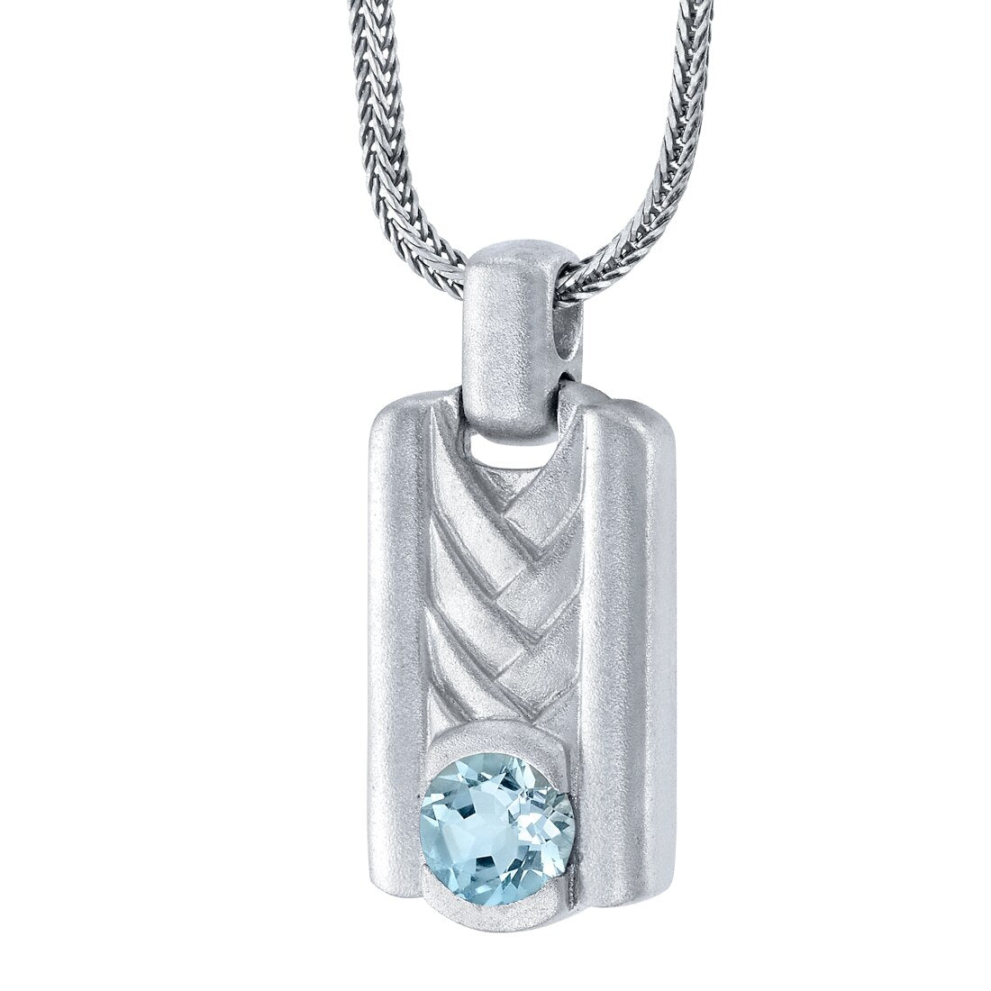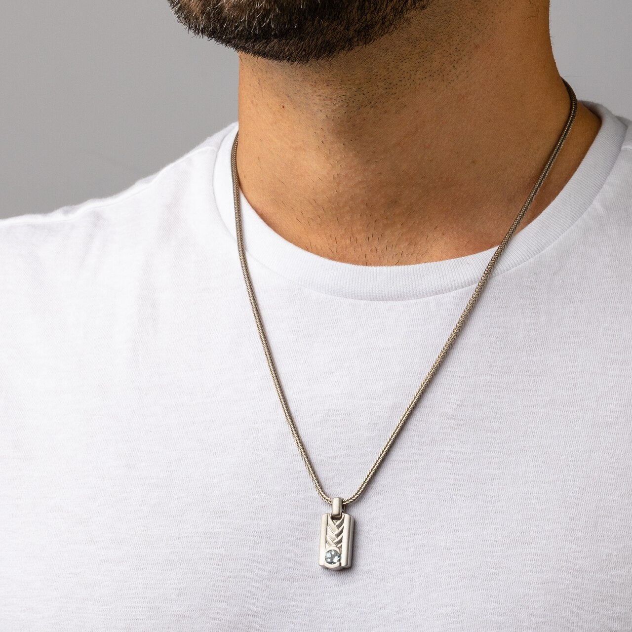 Aquamarine Chevron Pendant Necklace for Men Sterling Silver