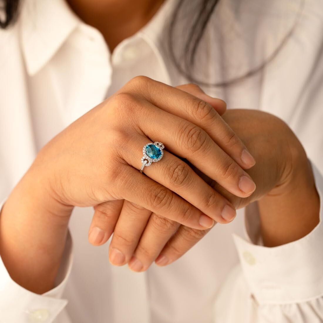 Explore the Peora London Blue Topaz - celebrated for its profound blue elegance, reminiscent of tranquil ocean depths and everlasting charm.